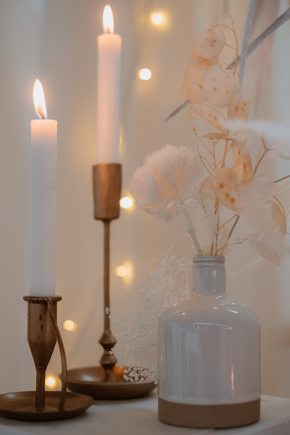 Chandelier or vieilli pour bougie cierge, à mixer avec les autres bougeoirs de la gamme.