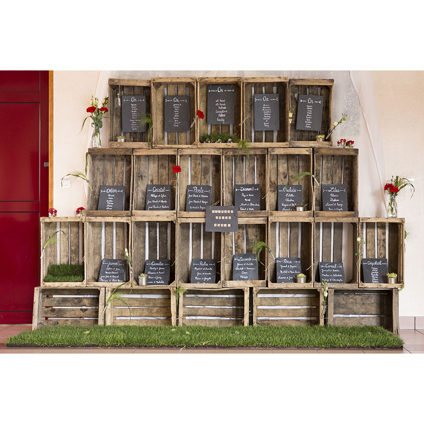 Un indispensable de votre décoration : ces jolies caisses à fruits. Idée : Un magnifique support pour vos plan de table ! A louer pour votre joli jour ! 36x55xH26