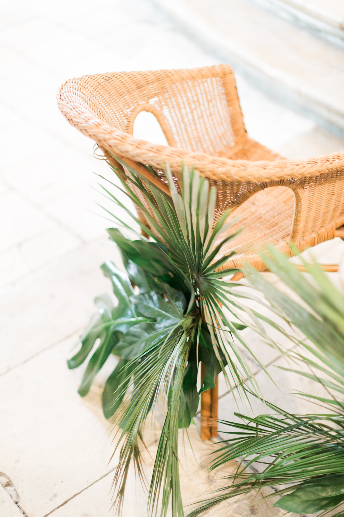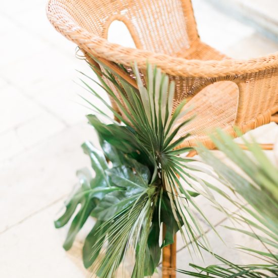 Une jolie chaise en rotin à louer en assise pour votre coin livre d’or.