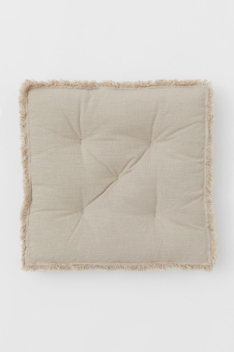 Coussin carré aux bords frangés
