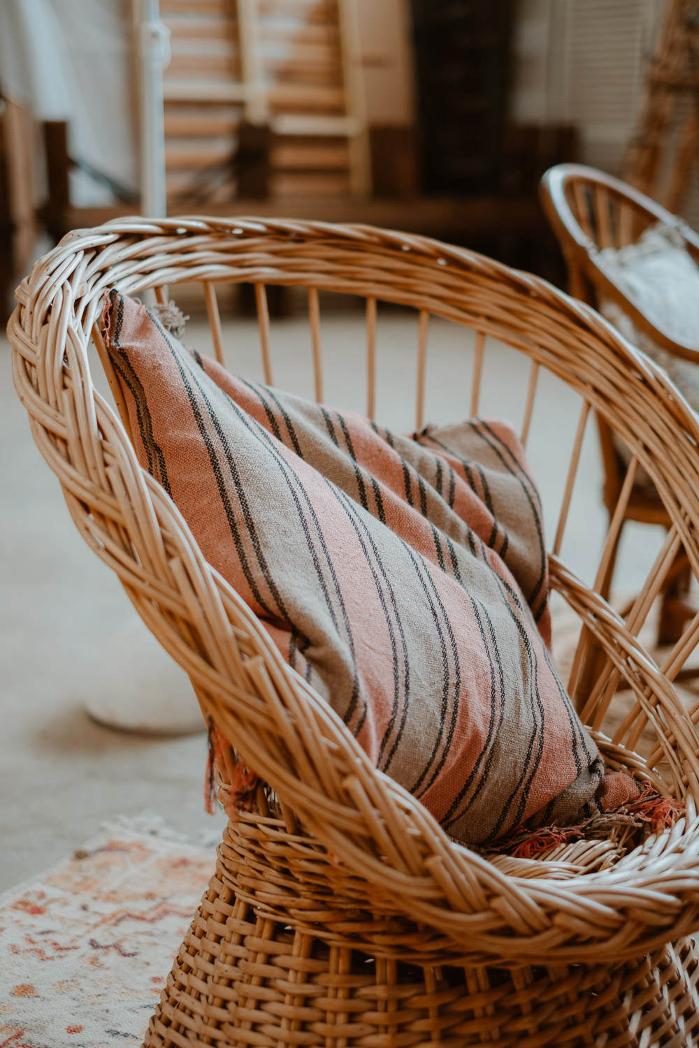 Grand coussin rayé rose