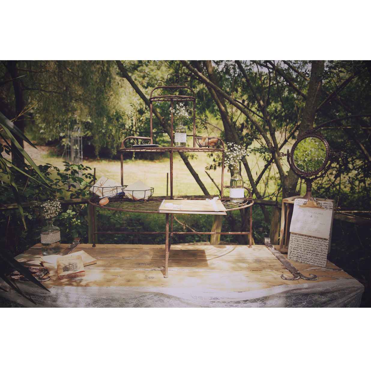 Cette étagère est pliable et accompagne de joli décor ( coin urne, coin cadeaux invités, coin livre d’or … )H105 x L100 x l51