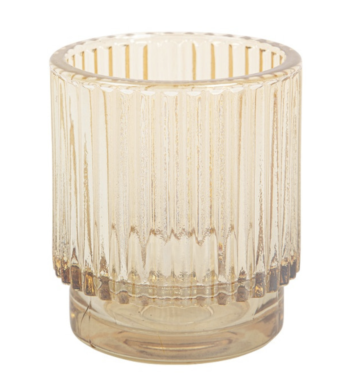 Photophore ambré légèrement irisé. Parfait pour une décoration bohème.