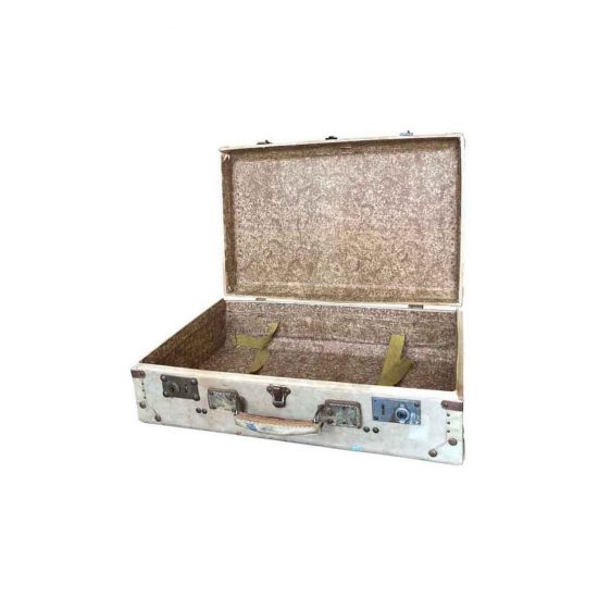 En location, une jolie valise crème avec l’intérieur fleurie pour le côté vintage.
