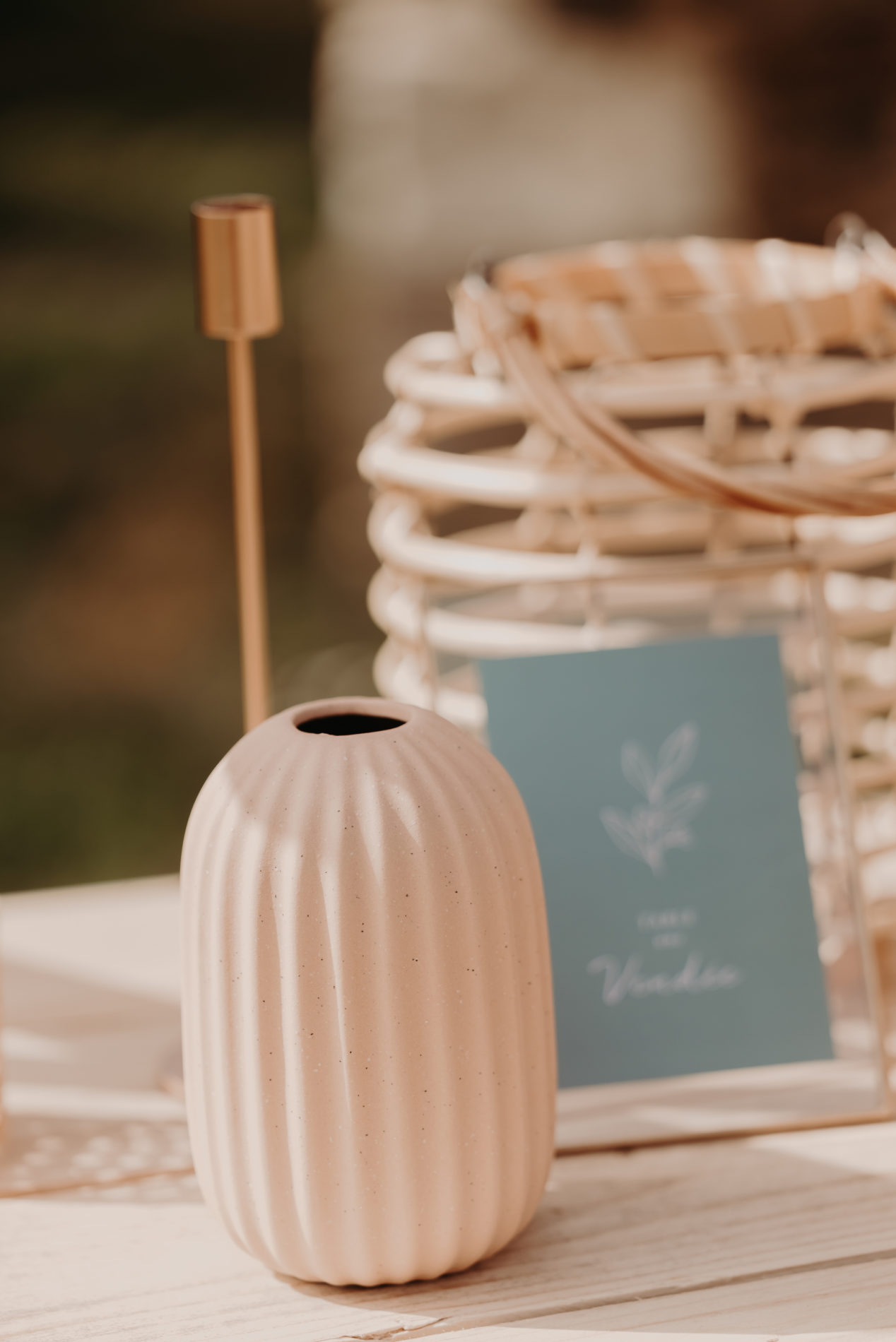 Vase ciselé en grés rose blush