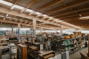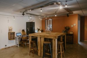 Alors en 2013 ,  je me suis lancée grâce à mes parents, mon frère, mon mari et son papa. Nous avions fait 100 m2 dans les bâtiments de famille, et le stockage dans un vieu poulailler: c’était déjà génial … mais j’avais une autre vision: encore PLUS GRAND, PLUS DE MATOS, UNE BROCANTE ET J’AVAIS ENVI DE PARTAGER : co-working !