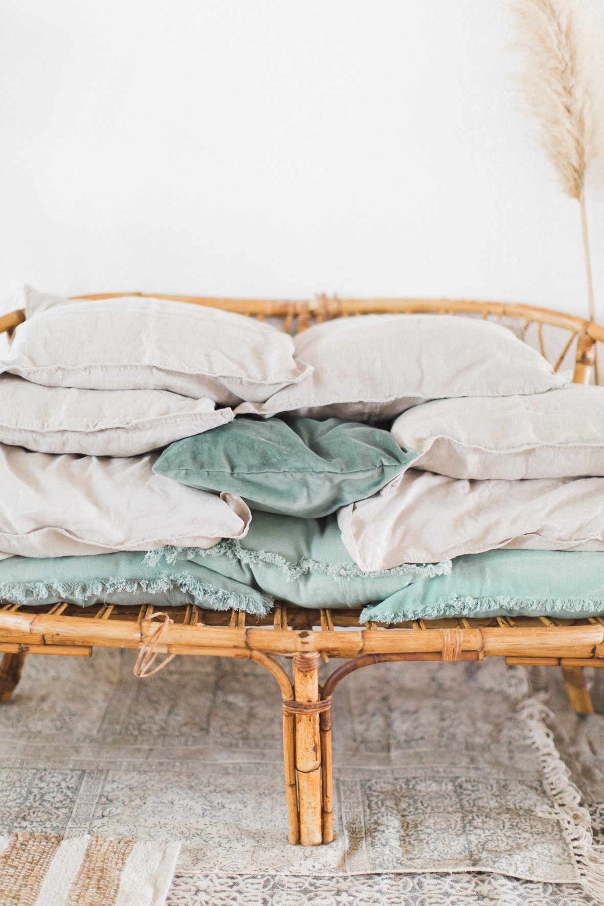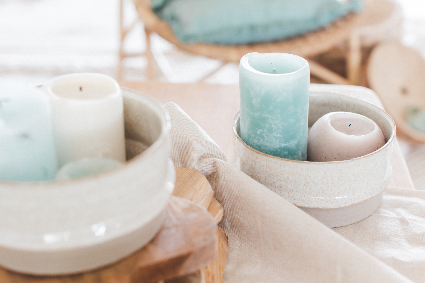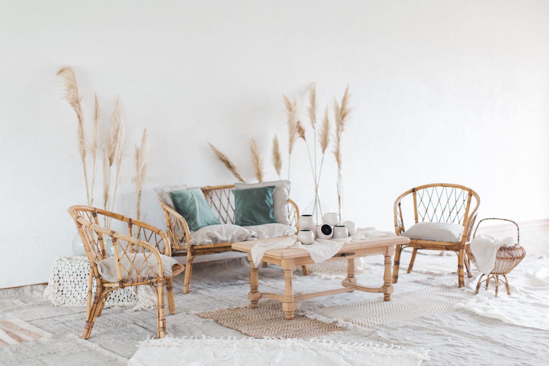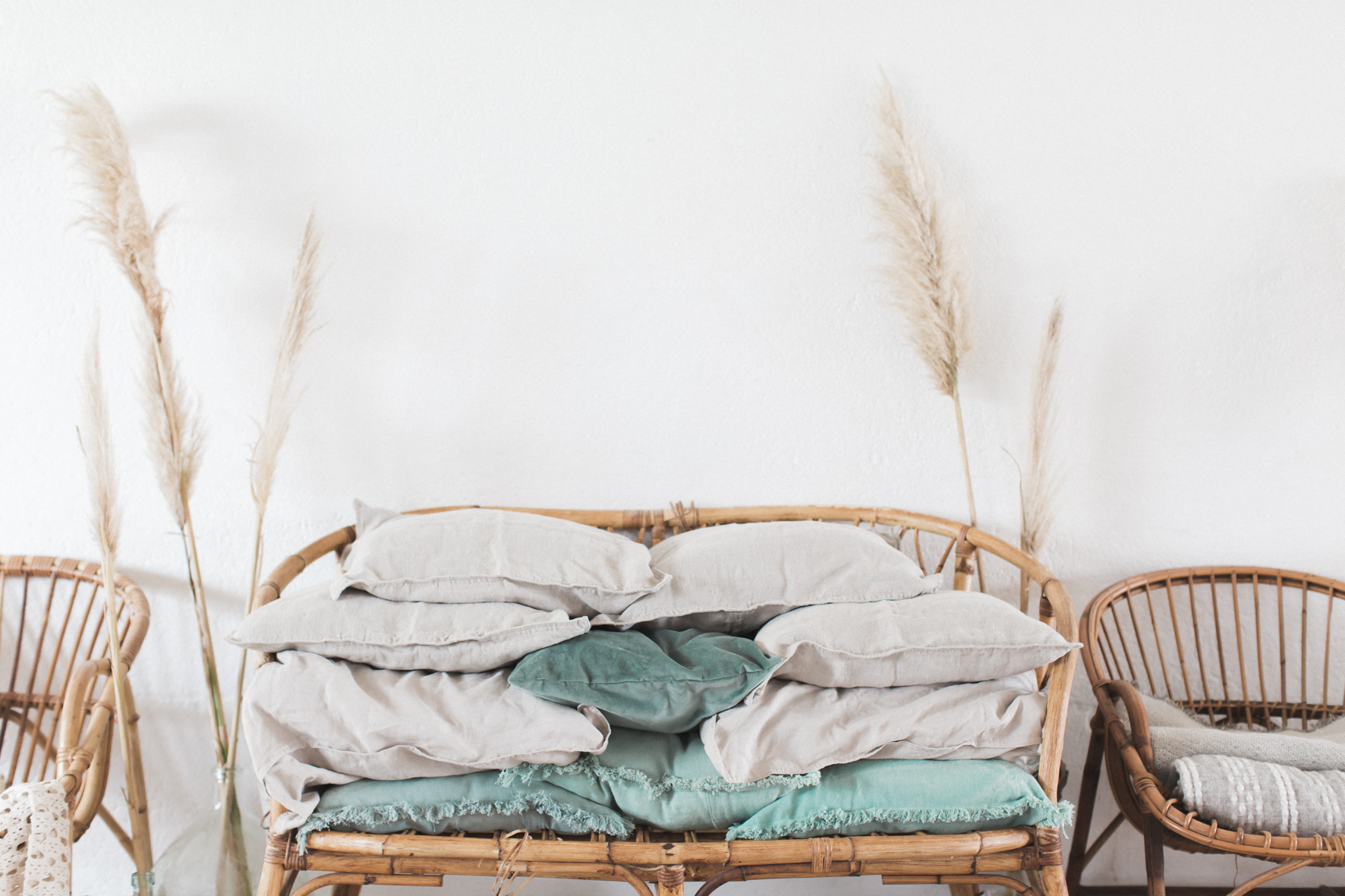 Je me suis amusée à créer l’ambiance d’un mariage bohème comme je le rêve. Un dîner en petit comité avec les gens qu’on aime le plus : élégant mais d’une grande simplicité ! Une belle lumière : via un code couleur clair . des jeux de matières : lin, laine, gaze & coton. Un mobilier unique, chiné & retravaillé avec amour : tables basses, chandeliers or, vases. Des fleurs à la coupe délicatement disposées : pampa, lysianthus … & mes bests : Dame Jeanne, bouillotte en grès & lin