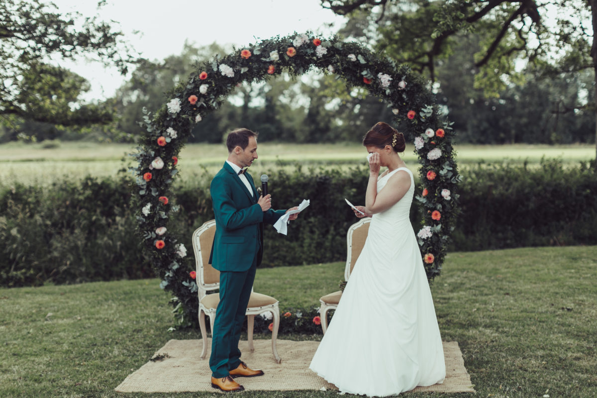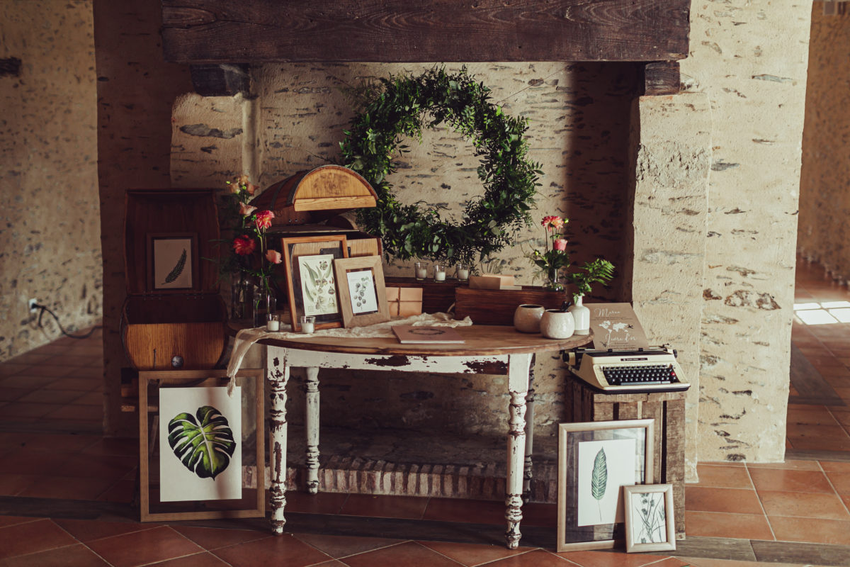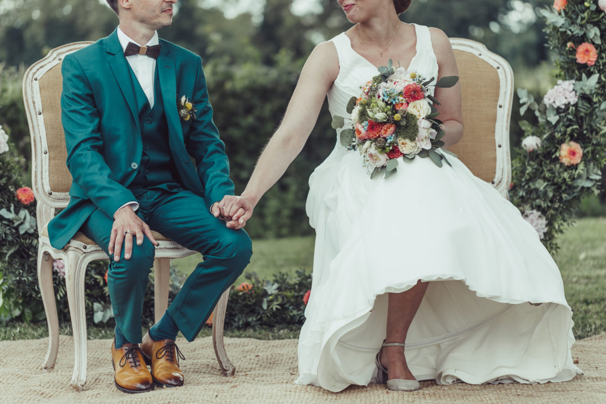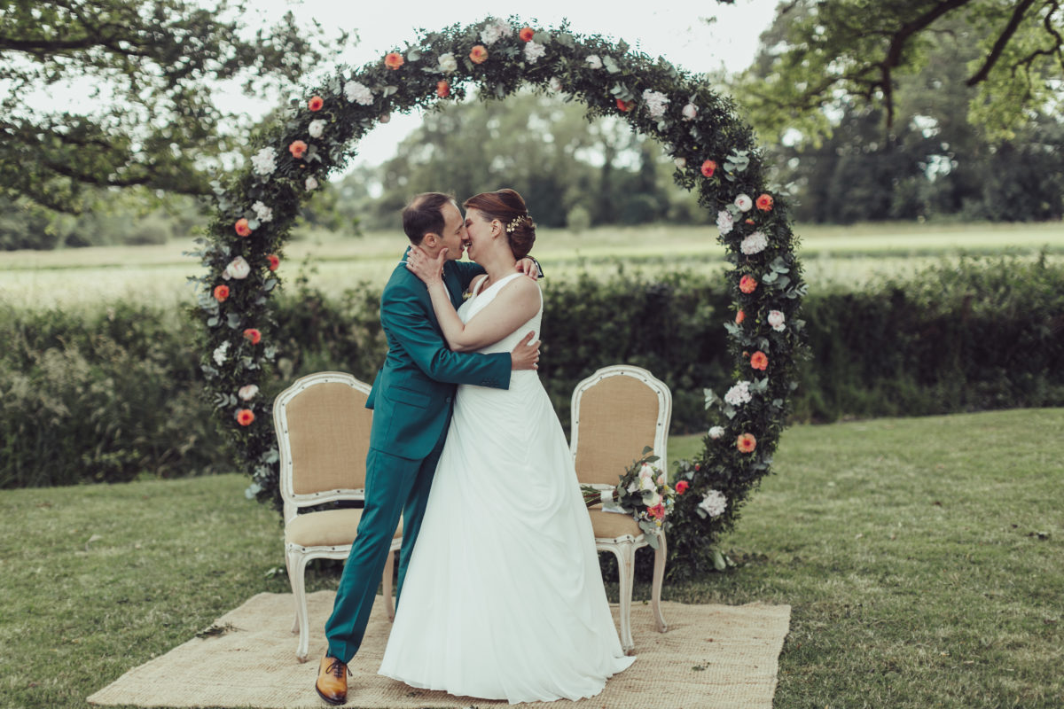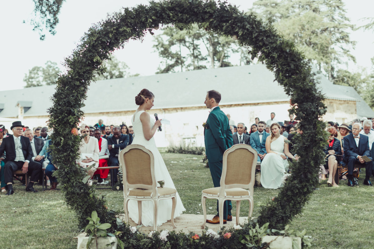 Quel Bonheur d’avoir eu la chance de te rencontrer ! Tu nous as créé le décor parfait de cette journée parfaite !!!Tout ce qu’on a pu imaginer, tu l’as concrétisé en mieux à chaque fois ! Tu as su nous cerner dès le début toutes tes propositions étaient pertinentes. Tu as toujours été disponible et prévenante. Le fait aussi que tu puisses aller au bout du projet en installant la décoration sur le lieu, nous a beaucoup simplifié les choses, nous avons eu juste à profiter ! -> le plus beau souvenir de votre joli jour ou un moment particulier ? Sans conteste, la cérémonie laïque, le cadre était idyllique. De remonter l’allée végétale au bras de mon Papa en regardant mes deux filles lancer des pétales. S’installer au creux de cette splendide arche ronde et écouter tous les témoignages d’amour de nos proches. Echanger nos voeux sous ces grands chênes centenaires, nos filles nous apportant les alliances. J’écris ces mots, j’ai des frissons… un moment très riche en émotions ! votre conseil pour de futurs mariés Ne pas hésitez à déléguer, soit à des professionnels, soit à des proches. Le but étant de se laisser porter et de profiter vraiment de sa journée. Prestataires : – Vidéaste Matt Marions Nous Dans Les Bois – Lieu de réception Mr et Mme De Meaulne Château de la Cartrie – Fleuriste Guillaume Fleuristyl – Traiteur L’Orée Des Bois – Robe de mariée Sophie La Maison du Mariage – Coiffeur / Maquillage Armelle B et Etre Belle avec Gwenn – DJ Lionel Musique et Emotions – Groupe de musique Margot Orphée – Papeterie Pastilles et Petits Pois – Costume Espace Mariage – Chaussures Pour Bruno Chez Monsieur pour moi WhatFor – Alliances Claire et Achille L’Atelier Du Feu Secret à Vitré (35) |