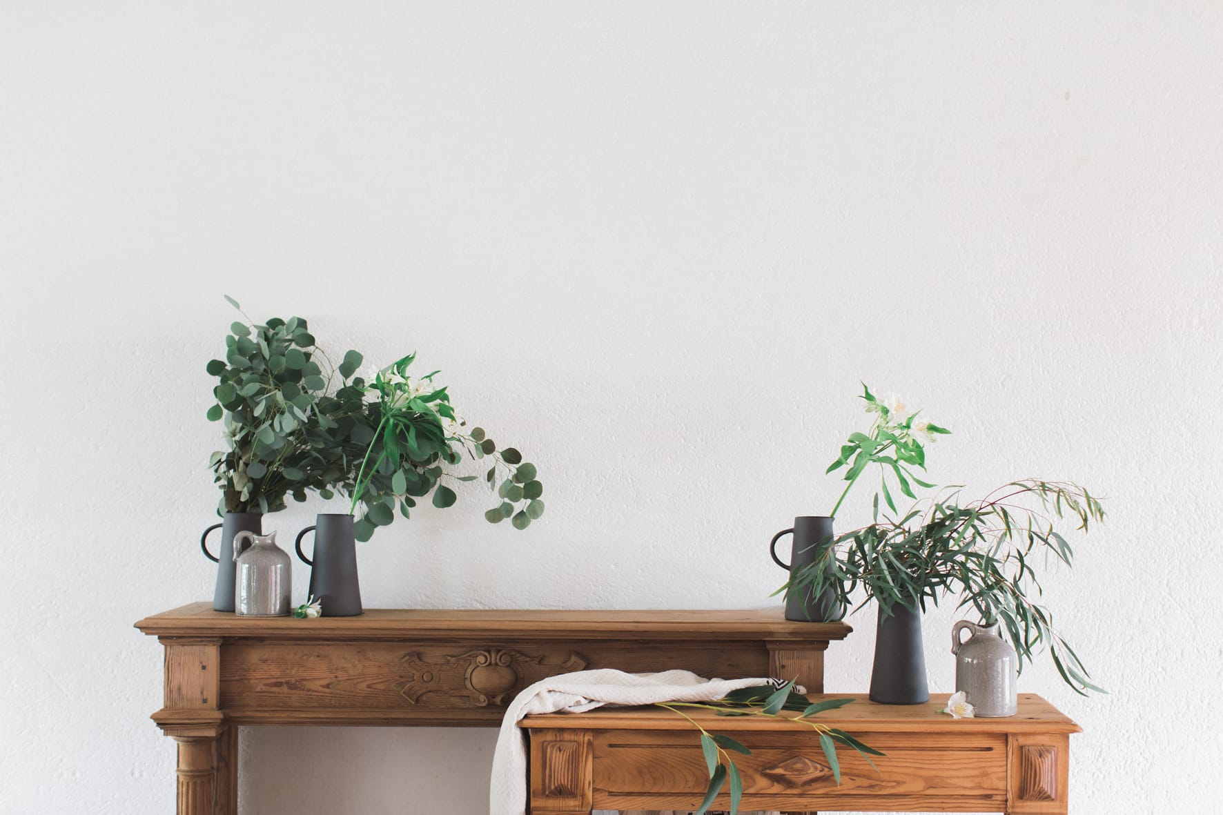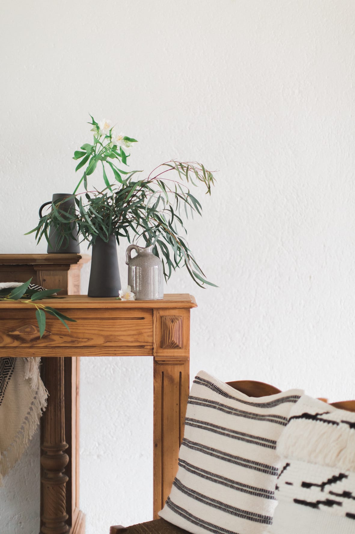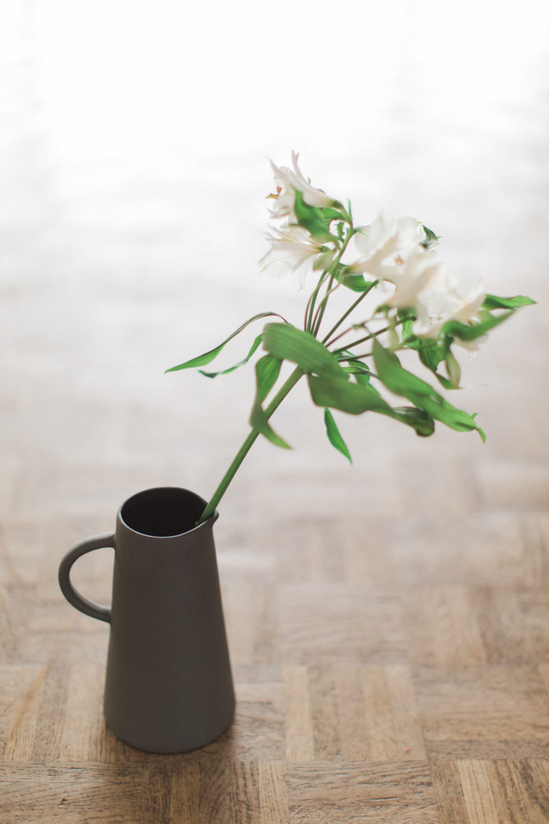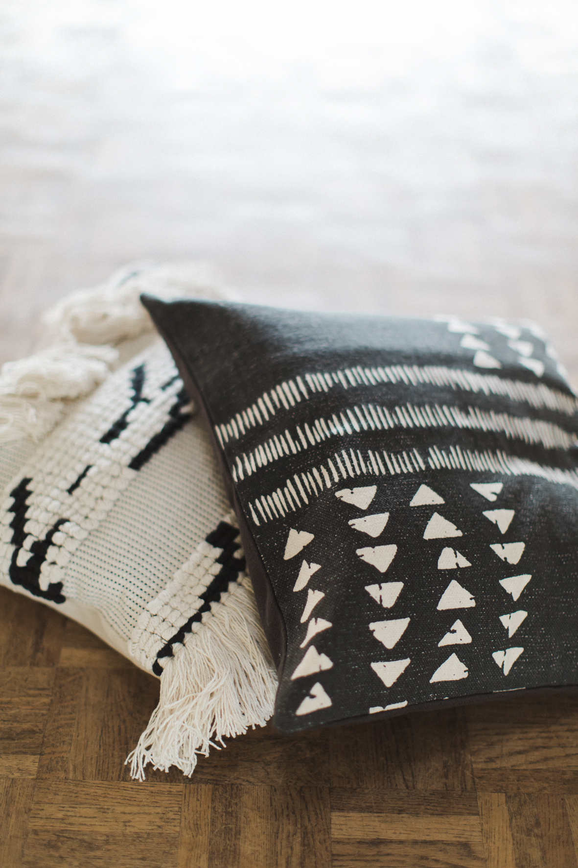 Manteaux de cheminée, la belle sélection de meubles noirs et bois d’un de mes brocanteurs favoris , macramé bi -couleur, vase grès noir aux lignes très fines, vieux cache pot Cuivre, chandelles modernes couleur cuivre, chaises bois et blanches, tapis aux formes géométriques … Cette alliance Noir & Blanc mêlée au cuivre et au bois nous emporte dans un univers moderne mais très chaleureux.